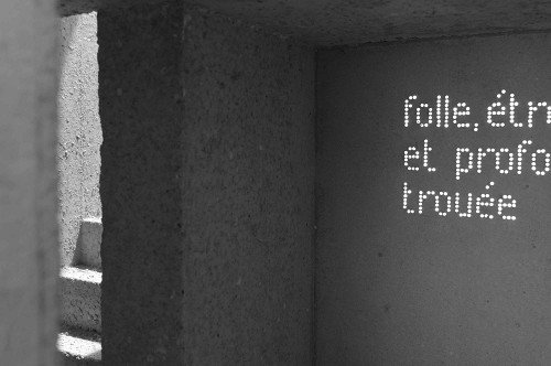 Ils apparaissent comme des pensées fugaces, dans l'obscurité des blocs de béton. Inscrits en petits points brillants, ils conduisent la lumière ambiante à l'intérieur du volume, par la magie des fibres optiques, sans aucun artifice supplémentaire.