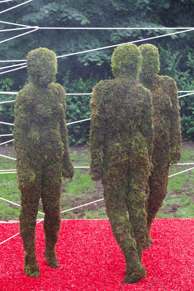 Ce livre montre les différents aspects de son art au fil des ans. Formica insiste sur l'aspect révélateur des matériaux et de ces techniques utilisées, il s'agit de sédimentation entre ces nouveaux procédés et l'observation du monde par l'artiste, révélant de facto une autre vision des choses. Une de ces séries s'articule autour de ce qu'il nomme une "Armée de sel". Sont reproduites aussi ses Vanités en sel, sculptures étonnantes, têtes de taureaux de sel, objets divers, des cordes, des crânes ; de grandes statues de sel comme ces personnages de Jumeaux ; les céramiques, les bouteilles de sel en hommage à Morandi, ou bien les peintures qui reconstruisent l'image après des subtils arrachements de la matière, ici le papier ; figure de Pape, référence à Vélasquez et Bacon, entre autres. Jean-Pierre Formica reprend à sa manière les grands "motifs" de l'histoire de l'art. Notons que Formica a développé un fort goût pour l'archéologie comme le souligne Olivier Kaeppelin dans son très beau texte, L'émergence du visible, en ouverture du livre. Pointant les références de l'artiste : Giotto, Greco et Cézanne. Ce volume est composé de 7 parties aux thématiques diverses, les mythes, l'histoire dans l'Histoire, Nouvelle Nature, Révéler/dévoiler, le dedans et le dehors, puis un interview avec l'artiste qui clôt le livre. Il est dommage que certaines œuvres ne figurent pas dans ce livre notamment les Trois Grâces mannequins constitués d'herbe qui a poussé durant 5 mois dans le Domaine de St-Germain-en Laye, une création (2). Il fallait choisir et se contraindre – dans le cadre éditorial imposé. Dans un entretien, il y a quelques années, l'artiste me disait ce mot : "Cette possession de la forme est dictée par une continuité physique. Ce n'est pas l'élément réaliste qui s'impose mais la mémoire. Lors de ce processus, le geste physique s'impose comme une interrogation et un dialogue entre la nature des choses et une certaine abstraction – tel un jeu." Le propos de Jean-Pierre Formica tend assidument à réactiver une mémoire emplie de sédiments, de la faire surgir à la surface du Temps que nous vivons. Son vocabulaire est constitutif d'une idée qui sous-tend toute son esthétique. Finalement, quels que soient les nouveaux procédés utilisés par l'artiste, ses créations ne forment qu'une seule et même œuvre unique et profonde dans son rythme physique et sa temporalité. Une substance que l'on saisit à travers ce livre – presque une somme. Patrick Amine