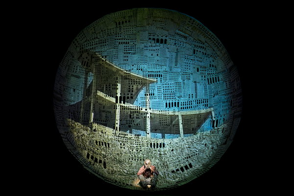 L’homme démembré, perdu au sein d’un monde d’édifices qui s’empilent à l’infini semble s’interroger sur son devenir et sur celui de la planète. En ruine, à même le sol, sa tête, ses bras, racontent la souffrance de ne plus être entier dans un monde en urgence où toutes les capacités sont mobilisées en permanence. Et puis il y a ces bâtiments interrompus, qui sont autant de vies avortées. D'une douleur sourde, similaire au morcellement corporel émane des constructions ou plutôt des déconstructions. C'est également par un jeu d'ombre, que l'on peut appréhender toute l'ampleur du détail des sculptures présentées. Le carton peint, rapiécé, éclairé par endroit, laisse s'échapper d'autres immeubles, d'autres créations sur les murs. Entouré de structures qui s'envolent à l'infini, le spectateur à le plaisir d'admirer une architecture en dentelle. Peu à peu la nature reprend ses droits sur le ciment, un pont inachevé se métamorphosera en jardin, puis en potager. L’architecture oubliée laissera au fil des années, de nouveaux terrains de vie, d’expérimentation pour l’être humain. Un nouveau jeu de cube à étalonnage. L’homme réutilise ces fragments de décombres, les complète, et s’érigent alors de nouvelles habitations, de nouveaux espaces individuels et collectifs. D’autres bâtisseurs après les constructeurs, font une Italie et plus largement une planète en constante évolution. Vanessa Stchogoleff