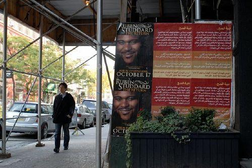 À Manhattan, New York, une campagne d’affichage a eu lieu un mois durant. Sur les affiches, une blague arabe était écrite en arabe Campagne d’affichage dans l’espace public dans le cadre de l’exposition Who Cares, Creative Time, New York, 2006 Courtesy Galleri Nicolai Wallner, Copenhague