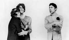 En effet, dans les années soixante-dix, prenant exemple sur les féministes qui contestent les rôles traditionnels qu'on leur assigne, les hommes commencent à s'interroger sur leur identité. Dans cette période d'incertitude, la question de l'homme devient un problème à résoudre plutôt qu'une donnée. Les limites du masculin et du féminin sont devenues floues. Et chaque homme, désormais, de s'interroger sur son identité profonde. "L'ordre si souvent entendu : ‘‘Sois un homme'' implique que cela ne va pas de soi et que la virilité n'est peut-être pas si naturelle qu'on veut bien le dire. (…) L'homme lui-même et ceux qui l'entourent sont si peu sûrs de son identité sexuelle, qu'on exige des preuves de sa virilité. ‘‘Prouve que tu es un homme'', tel est le défi permanent auquel est confronté un être masculin. (…) La confusion est à son comble lorsque le langage courant parle volontiers d'un homme, un vrai pour désigner l'homme viril. Cela signifie-t-il que certains êtres humains n'ont que l'apparence de l'homme; sont de faux hommes ?" [23]. Par ailleurs, en se travestissant en ses parents, Journiac leur rend hommage [24], reconnaît qu'il en est la substance. Mais, lui qui a l'art de brouiller les pistes, suggère également, que la ressemblance physique à ses parents n'est due qu'au travestissement. Il joue sur la notion d'identification, différenciation et relève le défi de l'imitation en proposant sur un mode ludique une comparaison entre l'original et la copie. Par extension, en s'amusant de cette ambivalence, il questionne le fait que l'identification au patrimoine familial soit susceptible de déterminer le cours d'une vie. Enfin, Michel Journiac exprime son ambiguïté par rapport à la théorie freudienne. Cette œuvre est à la fois un "hommage à Freud" : "Je n'ai pas été insensible au travail de Freud" [25], mais, c'est également le "constat critique d'une mythologie travestie". D'une part, l'artiste suggère une certaine fascination pour la psychanalyse qui est selon lui, "une construction" [26], "une élaboration de concepts" [27], une histoire subjective "assez fascinante parce que mythologique. Et qui, en tant que telle, peut-être efficace" [28]. Et il ajoute : "cet hommage est un coup de chapeau aux psychanalystes car, une fois travesti en ma mère, mon père m'a mis la main sur l'épaule en me disant : ta mère jeune" [29]. D'autre part, l'artiste qui était homosexuel, refuse l'explication psychanalytique qui énonce que l'homosexualité découle d'un complexe d'Œdipe non résolu [30]. Il reproche à certains psychanalystes d'interpréter ce complexe dans le rapport au père et à la mère, "sans tenir compte du contexte social" [31]. Il ainsi dresse "le constat d'échec du rituel magique de la psychanalyse" [32] car il la considère comme une "pseudo-libération" [33], "devenue une méthode, une mythologie exégétique permettant de mieux culpabiliser l'individu" [34], et comme un mode d'emploi pouvant rendre compte de tous les problèmes [35]. Enfin, l'artiste accuse la psychanalyse de se fonder uniquement sur la parole, de faire l'économie du corps et d'être en cela, dictatoriale [36]. En définitive, de par sa position équivoque, Michel Journiac oppose Freud à Freud lui-même. La défense de l'artiste face à la psychanalyse, découle du vécu homosexuel particulièrement aigu et douloureux dans le contexte homophobe des années soixante-dix. Journiac amalgame le discours social qui traite l'homosexualité comme une maladie au discours psychanalytique, selon lui également culpabilisant et normalisant. Pourtant Freud développa l'argument de l'essentielle bisexualité comme une pulsion universelle mais qui n'en est pas moins une étape à dépasser [37]. Et loin d'être dictatoriale, le but de la psychanalyse est de donner aux analysants les moyens de mieux se connaître et de s'accepter avec ses différences et ses limites. De l'Œdipe à l'inceste Poursuivant la mise en scène de la quête d'identité au sein de la famille, Michel Journiac multiplie les travestissements dans L'inceste (mars 1975). Cette action photographique s'inscrit dans la continuité d'Hommage à Freud en aborde un autre problème régulièrement évoqué en psychanalyse : l'inceste. L'artiste bénéficie une fois encore de la complicité de ses propres parents qui interprètent leur propre rôle, tandis que lui poursuit sa volonté d'embrasser tous les rôles, en se travestissant grâce à tous les artifices nécessaires (perruque, bijoux, vêtements). Il joue le fils qui se travestit aussi parfois en femme afin d'interpréter la fille-amante ou la mère-amante. Une scénarisation s'ébauche à travers un travail d'animation par la mise en situation des personnages ; ce qui augmente le caractère fictif de l'œuvre. Les personnages aux attitudes figées, forcées, crispées, maladroites, à la gestuelle emphatique et démonstrative frôlent presque le ridicule. Journiac accentue davantage le côté parodique en adoptant des attitudes grotesques, maniérées (mimiques, moues, déhanchements, inclination de la tête.) Par le biais du travestissement et du photomontage, il étudie les multiples "possibilités mathématiques de l'inceste" [38]. Il joue sur les différentes variations de rapports incestueux possibles, en posant la question de la séduction. Qui m'attire ? Qu'est-ce qui me séduit chez l'autre ? Qu'est qui dans l'autre fait écho en moi, et de façon inconsciente, à ma relation parents-enfants ? Journiac utilise la théorie freudienne stipulant qu'il est dans la nature de l'être humain (mâle ou femelle) de commencer sa vie dans une relation amoureuse passive afin de révéler ce qui dans les années soixante-dix était totalement refoulé dans le discours social. En complexifiant ses tenues d'une scène à l'autre (manteau de cuir, salopette, costume…), Journiac suggère que l'inceste touche toutes les catégories sociales. ![]()