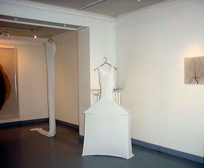Puis, comme pour en finir avec l'exposition du corps, Blanca Casas Brullet coudra dans l'érotique cotonnade striée des légendaires "Marcels" masculins les patrons des Ménines de Vélasquez, ou la forme serpentine de l'animal en pleine mue. La forme de la maison pour l'armature des Ménines pointe alors, fort traditionnellement un des symboles féminins qui ne prendra sens qu'au côté de l'intimité du masculin. De "Un", l'artiste passera à "Deux", dans la maturité même de son travail.