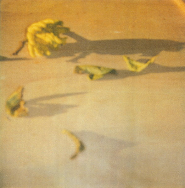 Rarement isolés, les clichés sont regroupés aux cimaises, formant des compositions, des correspondances qui associent 3 photos d'un temple à Agrigente à un détail de tableau, ou un coucher de soleil à 3 détails de tableau, le même peut-être. Ces séries peuvent investir un sujet commun, donnant à voir divers états de feuilles éparses de citron ou le parti pris d'une histoire naturelle revisitée sur quelques arbres d'Italie. Twombly dresse à sa façon un inventaire de feuilles affirmées, effacées, aux couleurs indécises ou cernées, et les noms en latin, quercus, ficus, laurus nobilis, écrits de sa main, virent à la trace. Impossible de ne pas rester à contempler ses tulipes, troublé par leur ambiguïté organique, comme on le sera par les entrelacs sanglants de ses roses. Ailleurs, c'est une déclinaison de choux qui nous rassurera, ou le cône subtil d'un datera angel's trumpet. Lorsque la végétation ne se fait plus singulière, on est à nouveau désorienté par des landscapes réduits à des frondaisons, où l'oeil croit voir des formes humaines dans leur mouvement figé, saisies au plus près de leur mouvance aléatoire, comme une écriture au sens définitivement caché. On finirait même par trouver les nuages de feuilles ou les surfaces striées des arbres menaçants, s'il n'y avait le calme du ciel, seule tache claire qui donne à comprendre l'échelle de l'espace. Twombly photographie aussi son entourage, d'incongrues pantoufles lyberty intitulées "Les chaussures de l'artiste" aux objets accumulés dans son atelier de Lexington en Virginie (que le film de Tacita Dean nous a rendu familier par la longueur de ses plans). Sans afféterie, il renouvelle ce topos de l'atelier d'artiste, puisque le flou, le cadrage avec lequel il rend compte d'une table surchargée ou de ses pots de pinceaux empêchent toute visée documentaire ou narcissique, toute projection signifiante. Ses sculptures semblent hésiter sur leurs socles, et comme celle qu'on peut voir dans l'exposition, elles rentrent en questionnement avec le reste de son travail, nous laissant dans la difficulté de trouver le lien. Ses photographies d'intérieurs souvent obscurs, troués des rectangles clairs des portes, des vitres, d'emboitement de pièces en perspective contrastent avec celles prises dans la lumière de l'Italie, extérieurs saturés de soleil sur les pierres de marbre (matériau ou déchets ?), espaces habités ou de travail momentanément désertés. En fin de visite, on se laisse prendre par un triptyque d'une forêt qui se dresse à mi-mesure du cadre, et dont la ligne de fond est densifiée par une colline, ne permettant aucune perspective, et le végétal impose sa présence immanente. Le parcours nous a mené d'un premier coucher de soleil en noir et blanc à un dernier en couleurs, dont l'opalescence sépia semble prémonitoire d'un adieu. Dominique Lacotte